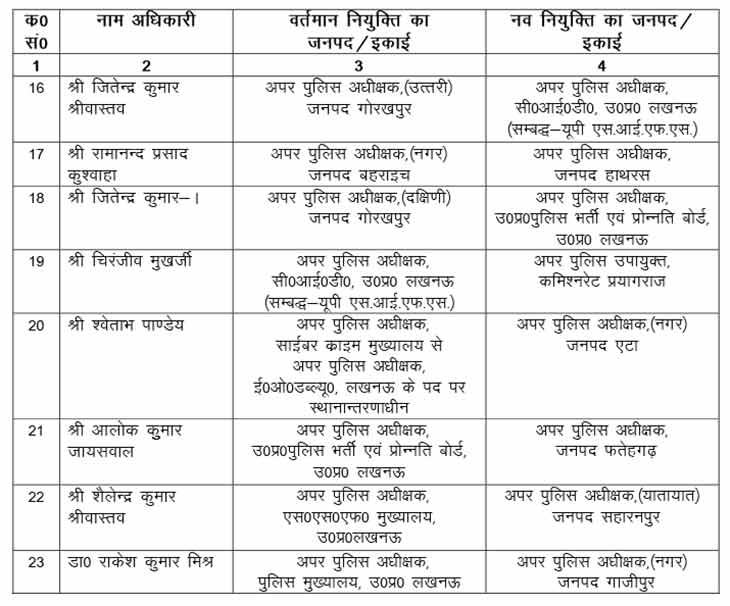 यूपी में 23 एडिशनल SP के ट्रांसफ !