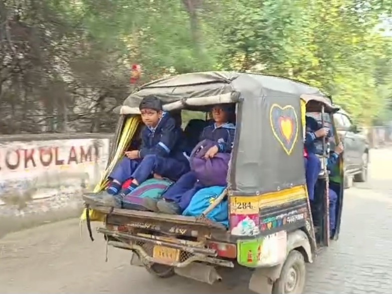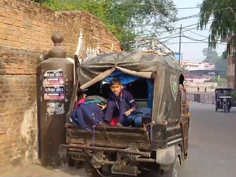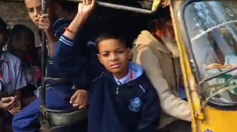 निजी टैक्सियों में ठूंसकर ले जाए जा रहे स्कूली बच्चे