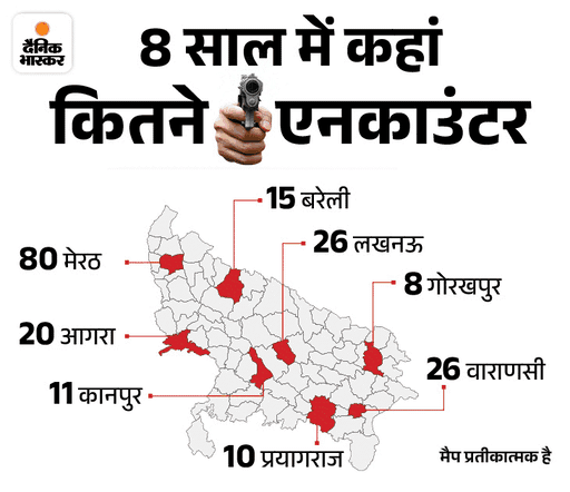 केस 1- कानपुर के कुख्यात गैंगस्टर विकास दुबे को उज्जैन से कानपुर लाते समय 10 जुलाई, 2020 को पुलिस ने मुठभेड़ में मार गिराया। पुलिस के मुताबिक, ट्रांजिट के दौरान गाड़ी पलटने के बाद दुबे ने हथियार छीनकर भागने की कोशिश की। जवाबी कार्रवाई में ढेर हो गया।