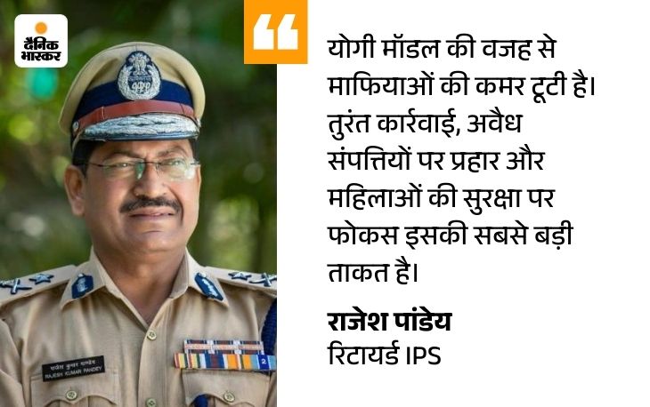 रिटायर्ड आईपीएस राजेश कुमार पांडेय बताते हैं- योगी मॉडल से ही राज्य में माफिया के आतंक पर रोक लगी है। अपराध कम हुए हैं। इसकी कई सारी खूबी हैं। इसके वजह से ही अपराधियों और माफिया के खिलाफ कार्रवाई में देरी नहीं होती है। तुरंत गिरफ्तारी, चार्जशीट और कोर्ट में तेजी से पेशी को इसकी बड़ी ताकत माना जाता है।
