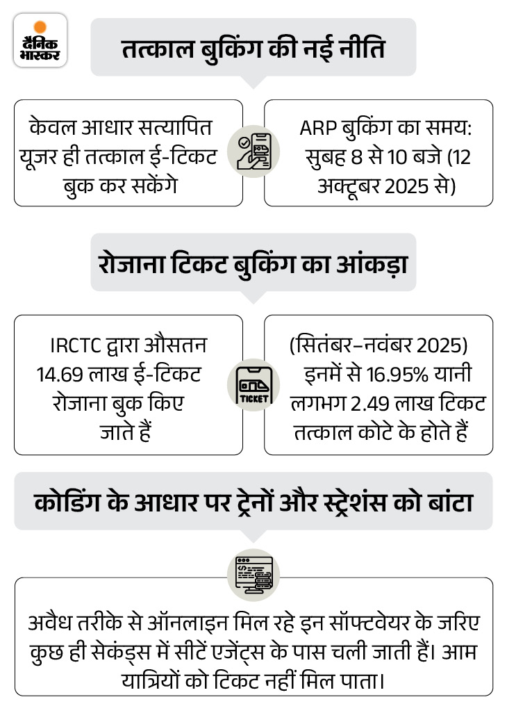 इसका नतीजा यह है कि एजेंट और सॉफ्टवेयर डेवलपर लगातार सिस्टम को बायपास करने के नए तरीके खोज रहे हैं और अवैध कमाई कर रहे हैं। वहीं आम यात्रियों को टिकट के लिए ज्यादा पैसा देना पड़ रहा है।