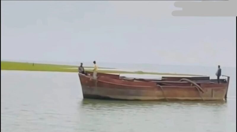 नावों की मदद से रेत का अवैध खनन होता है