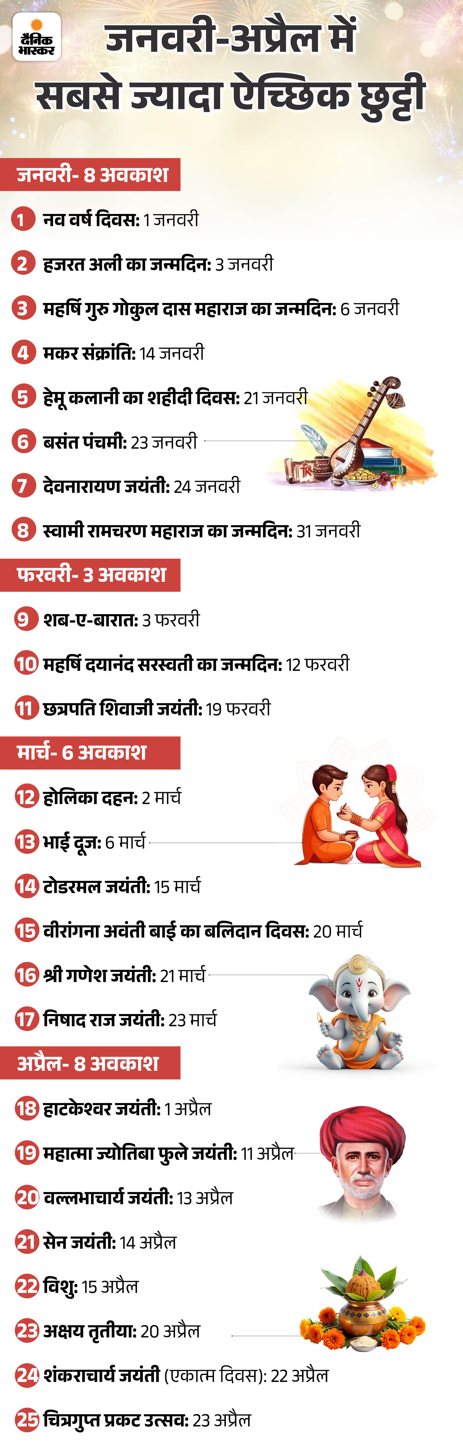 वहीं, कर्मचारियों के लिए 5 डेज वर्किंग की व्यवस्था पहले जैसे ही लागू रहेगी। इस बार सरकार ने ड्यूटी आवर बढ़ना तय किया था, लेकिन इस प्रस्ताव पर सहमति नहीं बन सकी। पढ़िए कितने दिन सरकारी दफ्तर खुले रहेंगे और कितनी छुट्टियां रहेंगी।