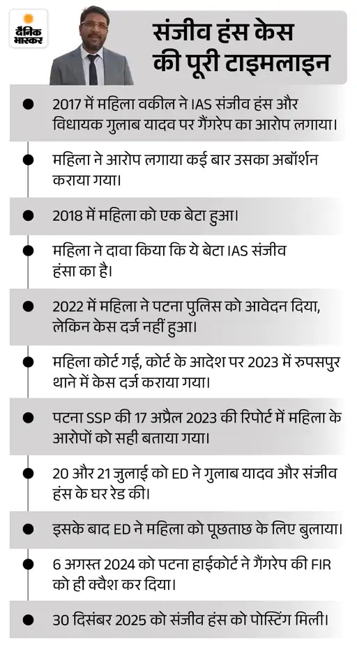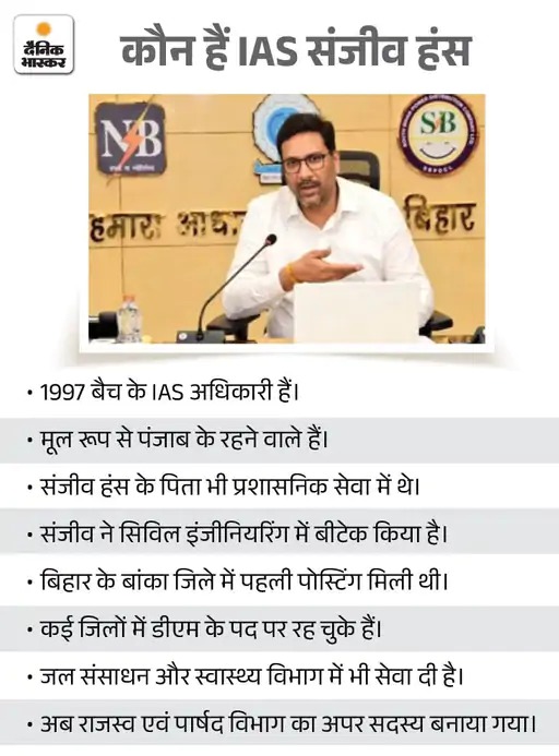 पहले रेप का आरोप फिर ED की गिरफ्तारी के 16 महीने बाद संजीव हंस की बहाली हुई है। पटना हाईकोर्ट से सशर्त जमानत मिलने के बाद संजीव हंस को बिहार सरकार ने वित्त विभाग में पोस्टिंग दी है।