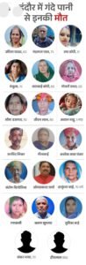 इंदौर के भागीरथपुरा में दूषित पानी से मौतों की संख्या 18 से बढ़कर 20 हो गई है। सरकार ने हाईकोर्ट में पेश रिपोर्ट में सिर्फ चार मौतें होना माना है, जबकि 18 मृतकों के परिवारों को 2-2 लाख रुपए की सहायता दी जा चुकी है।
