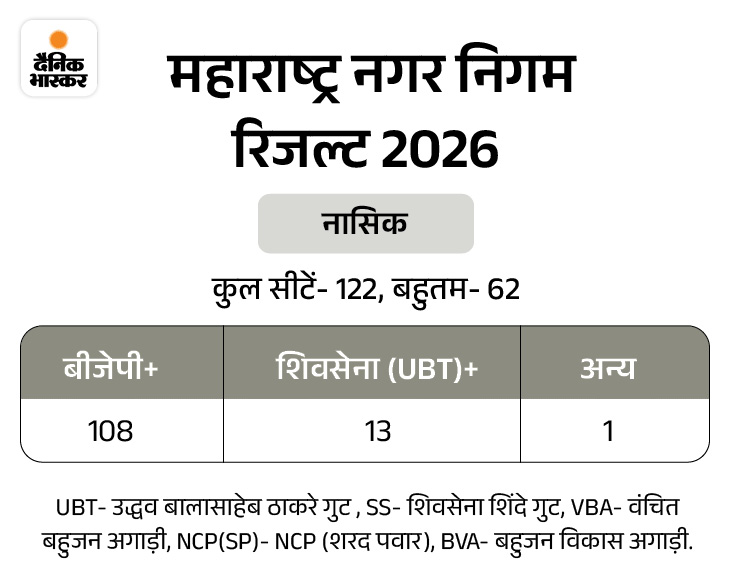 नासिक में BJP को 76 सीटें, शिवसेना को 29 और NCP को 3 सीटें मिलीं। शिवसेना (UBT) को 15, कांग्रेस को 3 ही सीटें मिलीं।
