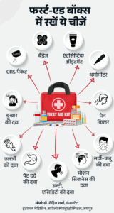 जवाब- ट्रेन ट्रैवल के दौरान अपने साथ फर्स्ट-एड किट जरूर रखें। इससे छोटी-मोटी क्राइसिस को आसानी से संभाला जा सकता है। इसमें कुछ चीजें जरूर शामिल करें। इसे नीचे दिए ग्राफिक से समझिए-