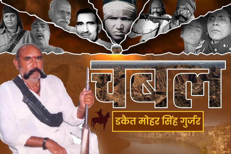 भिंड। अंग्रेजी हुकूमत के दौरान सिंधिया रियासत के गोहद के गांव जटपुरा के गुर्जर परिवार में साल 1927 में मोहर सिंह का जन्म हुआ था, जो आगे चलकर बीहड़ में आतंक का सबसे बड़ा पर्याय बन गया. आजाद भारत में मोहर सिंह गुर्जर की दहाड़ (ETV Bharat Special Dacoit Series) से पुलिस भी थर्राती थी. उसका नाम सुन लोगों के हलक सूख जाते थे. हालांकि, पुलिस उनकी फरियाद सुनती तो वो बागी नहीं बनते, लेकिन पारिवारिक कलह और पुलिस की अनदेखी ने उन्हें हथियार उठाने के लिए मजबूर कर दिया.