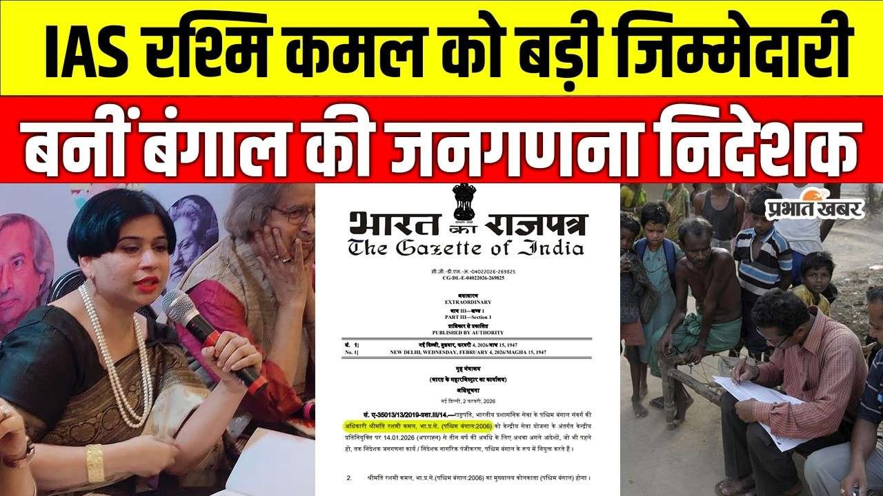 राष्ट्रपति द्रौपदी मुर्मू ने IAS रश्मि कमल को पश्चिम बंगाल के लिए जनगणना संचालन निदेशक (Director of Census Operations) और नागरिक पंजीकरण निदेशक (Director of Citizen Registration) के रूप में नियुक्त करने की मंजूरी दे दी है. गृह मंत्रालय की ओर से कल बुधवार देर रात जारी एक आदेश में कहा गया कि पश्चिम बंगाल कैडर की 2006 बैच की IAS अफसर रश्मि 14 जनवरी, 2026 की तारीख से कार्यभार संभालेंगी. उन्हें केंद्रीय स्टाफिंग योजना के तहत 3 साल की अवधि के लिए या अगले आदेश तक, जो भी पहले हो, सेंट्रल डेपुटेशन पर नियुक्त किया गया है.
