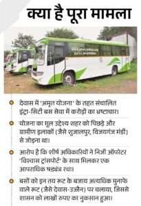 - बिल का खेल: आरोप है कि निजी ऑपरेटर ‘विश्वास ट्रांसपोर्ट’ ने बसों के उपकरणों और रखरखाव के लिए जो बिल पेश किए, वे वास्तविक नहीं थे। उदाहरण के लिए 100 रुपए के वास्तविक खर्च वाले उपकरण को बिल में 150 रुपए दिखाया गया।