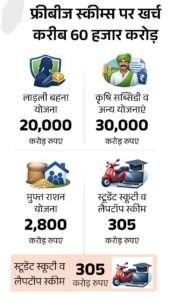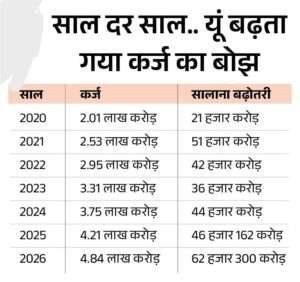 राज्य सरकार पर लोकलुभावन योजनाओं (फ्रीबीज) और बढ़ते कर्ज का दबाव लगातार बढ़ रहा है। मौजूदा वित्तीय वर्ष में सरकार अब तक 62,300 करोड़ रुपए का कर्ज ले चुकी है, और कुल कर्ज का आंकड़ा राज्य के बजट के आकार को भी पार कर चुका है।
