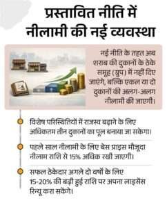 प्रस्तावित नीति का मसौदा लगभग तैयार है, जिसमें शराब दुकानों की नीलामी की पूरी प्रक्रिया को बदलने, टैक्स कलेक्शन को सख्त करने और ठेकेदारों की मोनोपॉली को खत्म करने पर जोर दिया गया है।